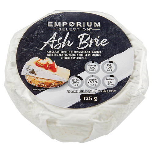 Handcrafted with Australian milk, this Ash Brie has a strong creamy flavour with the ash providing a subtle influence of nutty overtones.