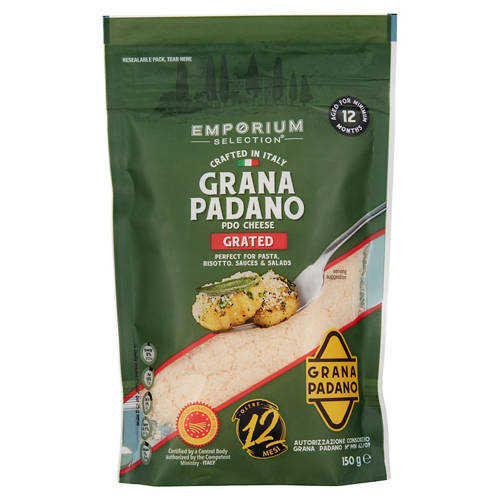 Emporium Selection Grated Grana Padano is aged for a minimum of 12 months. Perfect for pasta , risotto, sauces and salads.