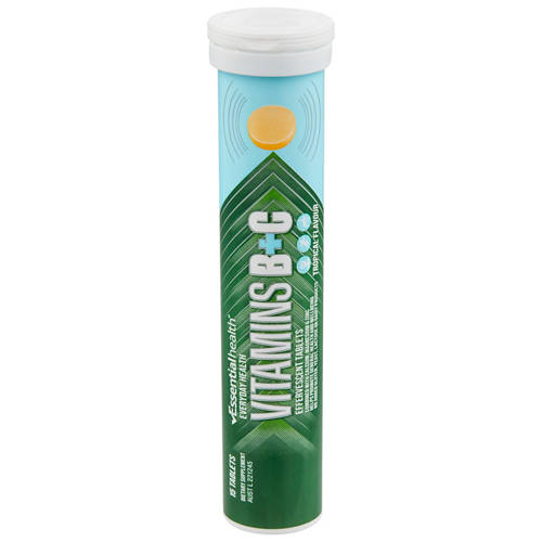 Essential Health Everyday Health Vitamins B+C Effervescent Tablets - Tropical Flavour is infused with essential vitamins, formulated with no artificial colours, flavours, or preservatives, and free from gluten, yeast, lactose, and dairy. Made in Germany, it delivers vital nutrients like Vitamin C and B complex to help promote general health and wellbeing.