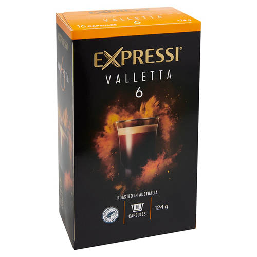 Indulge in Expressi Valletta coffee capsules, made in Australia from carefully selected Arabica beans sourced from Central and South America. Enjoy a smooth crema with nutty and caramel notes, with no artificial flavours, preservatives, or colours. Suitable for vegetarians and vegans, it creates a delightful coffee experience.