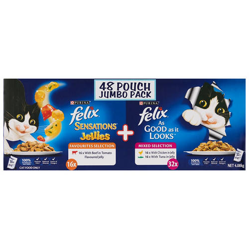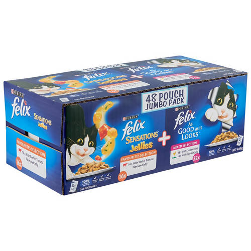 Keep your feline stocked up with the Cat Food Jumbo Pack.