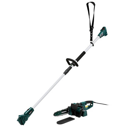 Changable from a Handheld chainsaw to Chainsaw on pole. Pole extends to 2.37m for tall branches. 750W. Rotatable cutting head. 10" bar and chain. Tool free SDS chain tensioning.