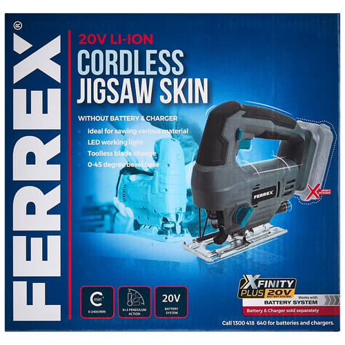 Cut with confidence using the 20V Jigsaw Skin. Powered by a 20V battery, it offers a no-load speed of up to 2,400rpm for smooth, precise cuts. Equipped with an LED working light, toolless blade change and a 0–45 degree bevel base, it’s ideal for sawing a variety of materials with ease.