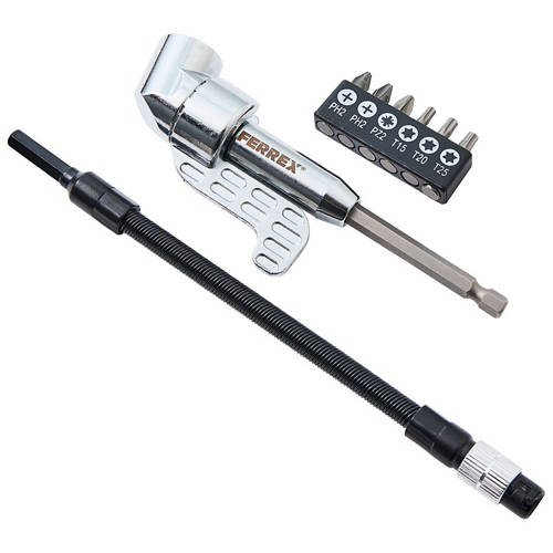 Choose from Long Bit Holder 2pc, Socket Adapter 6pc Long Bit Holder with bits, Long Socket Set 4pc or Angle Screw Attachment and Flexible Bit Holder.