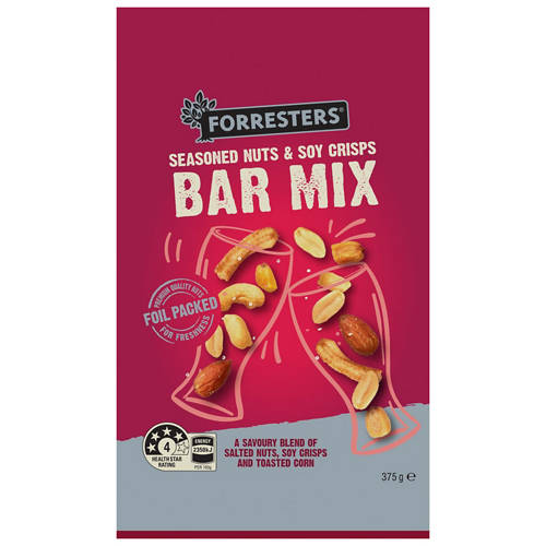 A savoury blend of salted nuts, soy crisps and toasted corn.