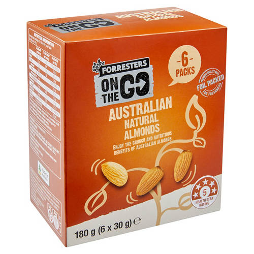 On The Go Almonds 6 Pack 180g