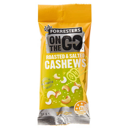 A snack-sized pack of delicious roasted and salted cashews, foil-packed to lock in freshness. Perfect to pop in your bag for a convinent, on-the-go treat.