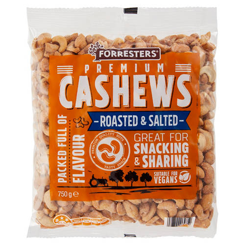 Delicious cashews, roasted and salted to perfection. No artificial colours, flavours or preservatives.