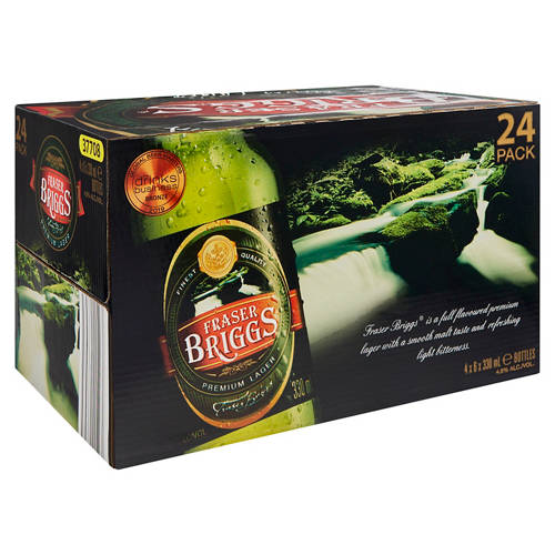 Fraser Briggs Premium Lager delivers a smooth, refreshing malty taste with a light bitterness. Ideal for sharing with friends at your next get-together.