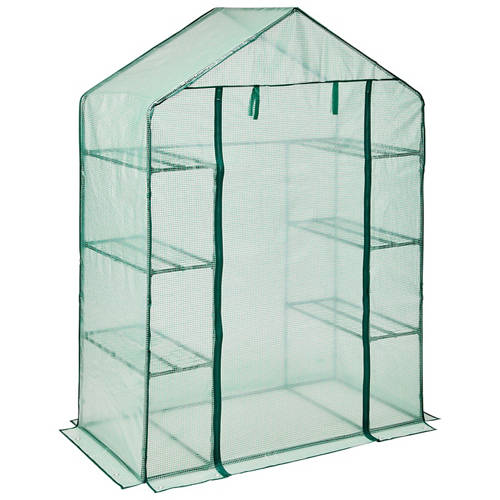 Reinforced PE cover.154cm high roll up door. 6x plant shelves.