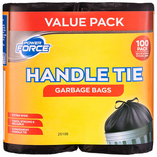 Tough on trash, easy to tie. These strong, tear-resistant garbage bags come in a handy bulk pack—perfect for busy households.