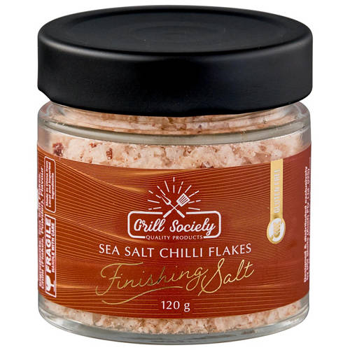 Grill Society Sea Salt Flakes 120g. Sprinkle plain, chilli or garlic 'salt' flakes to make every dish a little extra. Available in assorted flavours..
