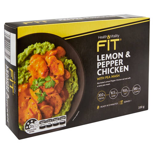 A filling and tasty meal of marinated lemon pepper chicken served with a zesty pea mash. Good source of protein. No artificial colours or flavours.