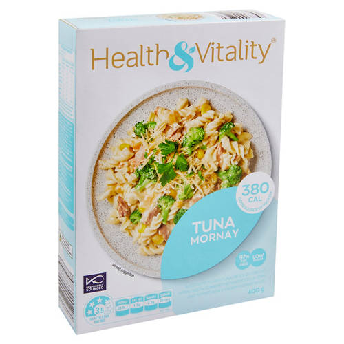 Tuna Mornay with succulent flaked tuna pieces on a bed of spirali pasta combined with broccoli and corn and topped with a creamy mornay sauce. No artificial colours or flavours. Good source of dietary fibre.97% fat free.Good source of protein.