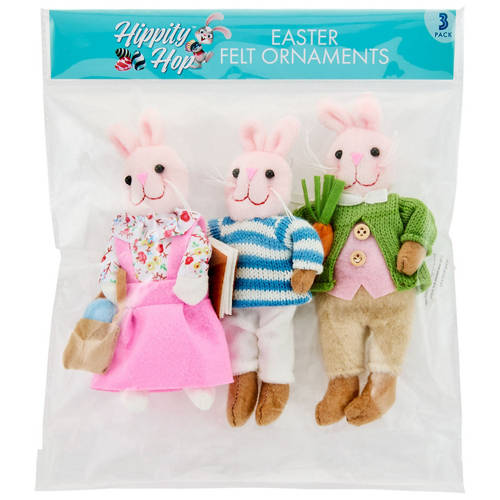 Choose from Felt Hanging Bunny 3 Pack, Mini Natural Bunny 3 Pack, Hanging Plywood Bunny 5 Pack, Boy Natural Bunny, Girl Natural Bunny, Pastel Battery Egg Lights 10 Pack.