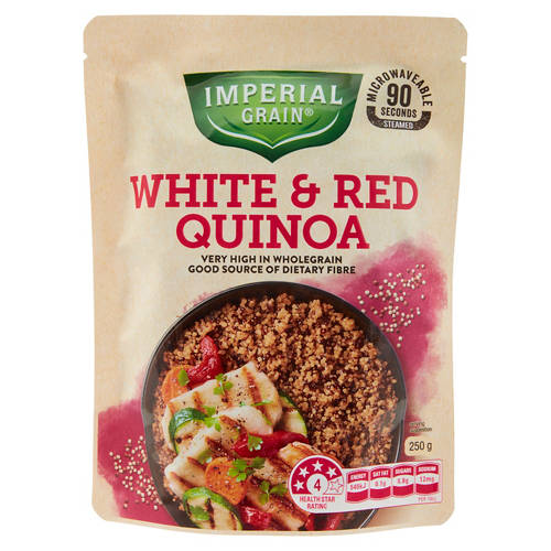 Enjoy the nutty flavour of red and white quinoa in a convenient microwave pouch. Add to salads or enjoy on its own. Made with no artificial colours, flavours or preservatives.