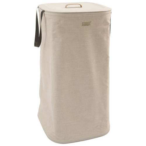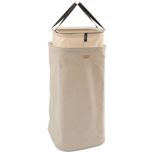 60-litre laundry hamper with lid, removable tote bag with carry handles, and a washable cover for easy emptying and cleaning.