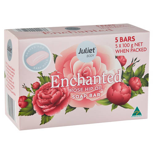 JULIET Enchanted Soap is formulated with rose hip oil to help calm and relax the body. Its mild fragrance will leave your skin feeling fresh and clean. Use everyday for pure bliss