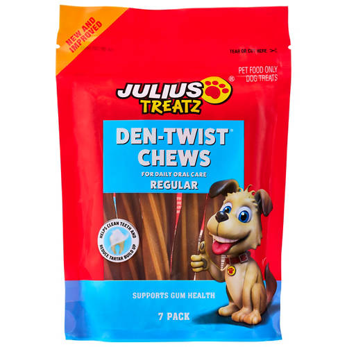 Den-twist® daily oral care for your dog, helps clean teeth and reduce tartar build up and supports gum health. No added artificial colours or flavours. No added sugar. Low in fat. Made in Australia