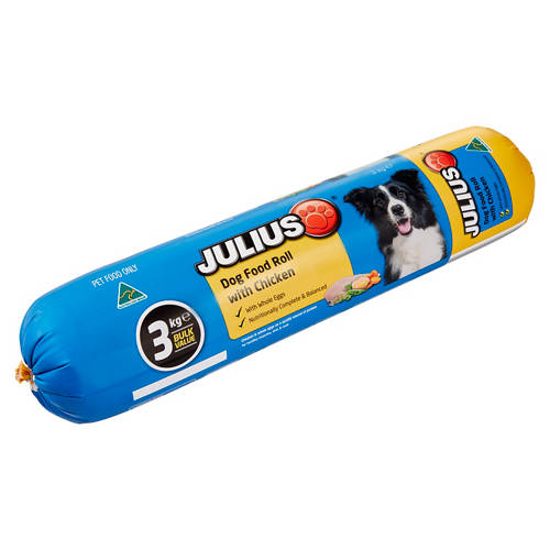 JULIUS® Dog Food Roll with Chicken is made in Australia and crafted with quality ingredients like chicken, beef, and vegetables. This complete and balanced meal supports healthy muscles, skin, and coat. It provides a delicious source of protein for your dog's energy needs.