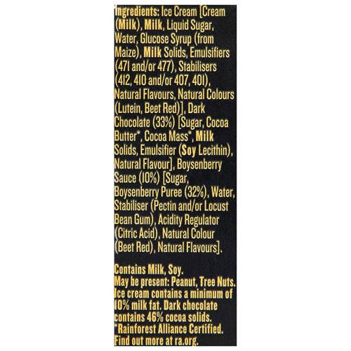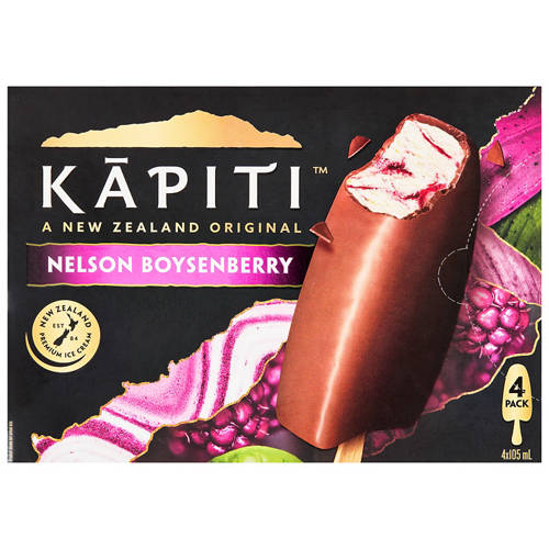 Perfectly smooth, creamy ice cream swirled with a sauce made from plump, sun-drenched Nelson boysenberries, dipped in rich chocolate.