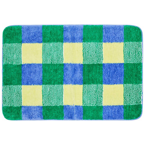 Thick and plush polyester bath mat with thermoplastic rubber backing. Assorted colours. Size: 60cm x 90cm.