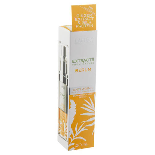 The LACURA Naturals Anti-Aging Serum is a lightly scented, intensive moisturising cream to help boost skin elasticity. Use of ginger extract and silk proteins to help moisturise and condition the skin to help counteract skin aging. Contains hyaluronic acid to help plump the skin and increase elasticity. Paraben-free.