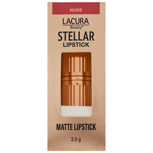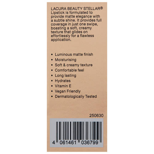 Lacura Beauty Stellar Lipstick is formulated to provide matte elegance with a subtle shine. It provides full coverage in just one swipe, boasting a soft, creamy texture that glides on effortlessly for a flawless application.