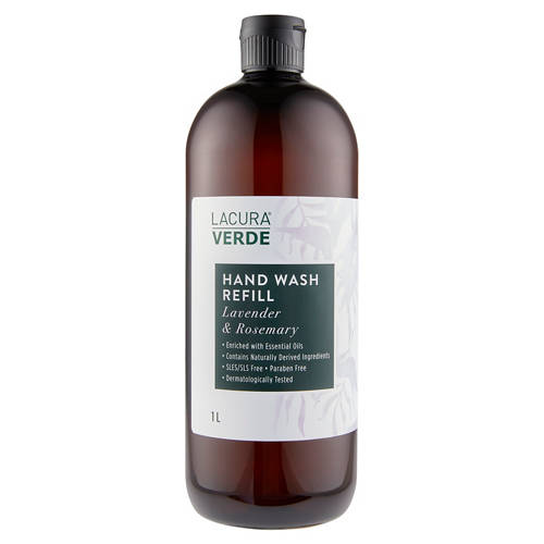 LACURA(R) VERDE Lavender & Rosemary Hand Wash is enriched with essential oils of Lavender and Rosemary in addition to natural extracts of Sage and Chamomile. Gentle enough for the whole family. Ideal for the guest bathroom.Enriched with Essential oilsContains Naturally derived ingredientsSLES/SLS FreeParaben FreeDermatologically Tested