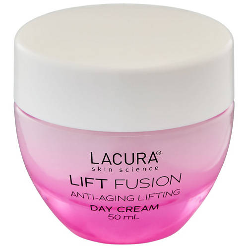 LACURA® skin science Lift Fusion is a professional 4 fold anti aging skin care range for mature skin that contains a powerful fusion of active ingredients that includes PRO COLLAGEN PEPTIDES, deeply moisturising HYALURONIC ACID, skin caring NIACINAMIDE and detoxifying ANTIOXIDANTS.The combination of these active ingredients reduces the appearance of fine lines and wrinkles, strengthens the skin barrier and rebalances uneven skin tone.LACURA® skin science Lift Fusion Day Cream illuminates and makes your complexion look fresh and plumped during the day. For the ultimate skincare routine, use in conjuction with Lacura® skin science Lift Fusion Night Cream, Serum and Eye Cream.