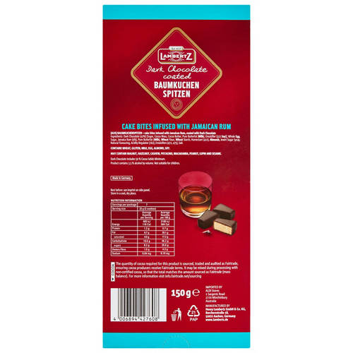 Dark Chocolate Jamaican Rum Baumkuchen Spitzen 150g
