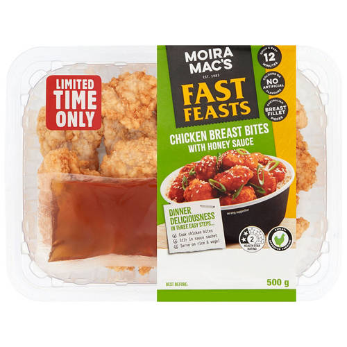 Enjoy Australian chicken breast fillet pieces glazed in a delicious honey sauce. Ready in just 12 minutes, these quick and easy bites make a wholesome meal anytime.