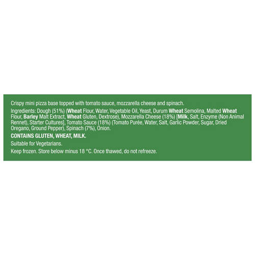 Crispy mini pizza base topped with tomato sauce, mozzarella cheese and spinach. The perfect festive finger food.