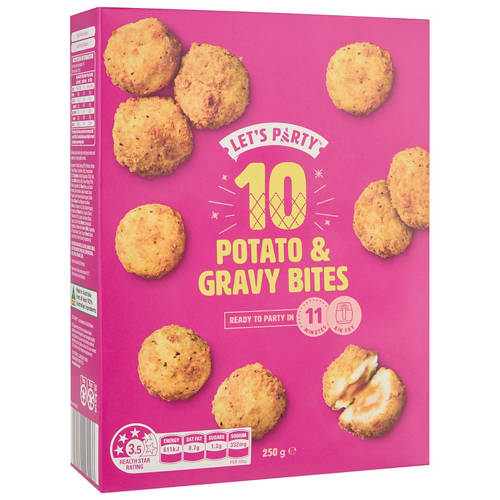Mash potato balls with a rich gravy centre and coated in a crispy golden crumb. Ready in 11 minute, these Potato & Gravy Bites are the perfect snack or festive finger food.