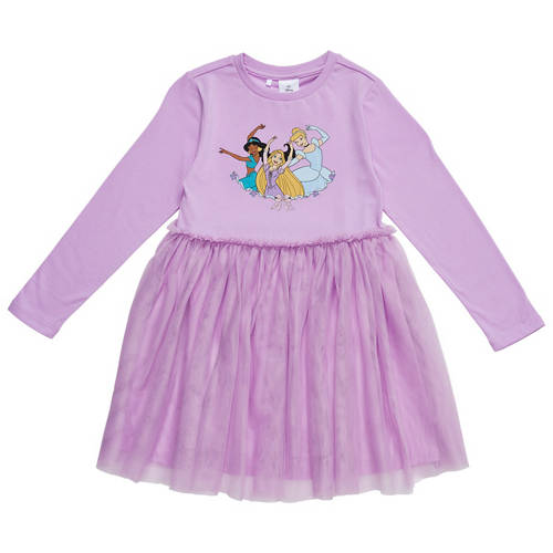 Long sleeves, crew neck, gathered tulle skirt
