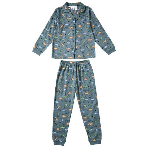 A soft and comfy button up front, long sleeve shirt and matching pants with an elasticised waist and ribbed cuffs.
