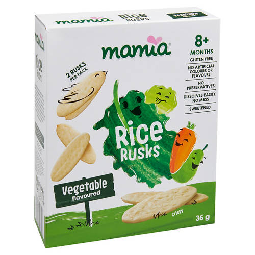 The MAMIA® Baby Food range has been lovingly developed for your little one to ensure they receive a varied start to their food adventure. These Baby Rice Rusks contain no artificial colours, flavours or preservatives.