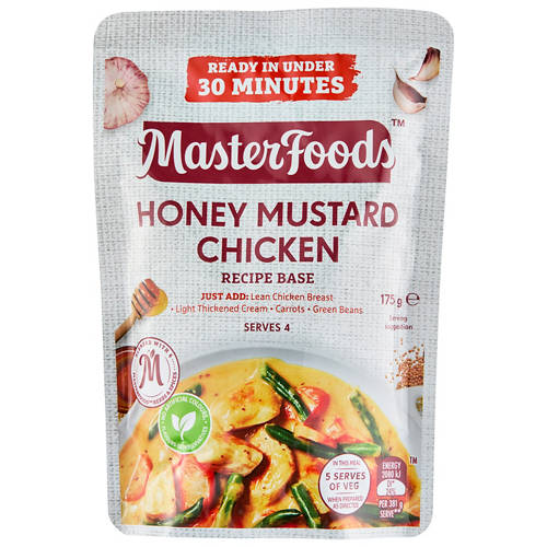 Enjoy a wholesome, delicious homemade dinner in no time with MasterFoods Honey Mustard Chicken Recipe Base. Made with quality mustard seeds and honey, this Recipe Base delivers on convenience and taste.