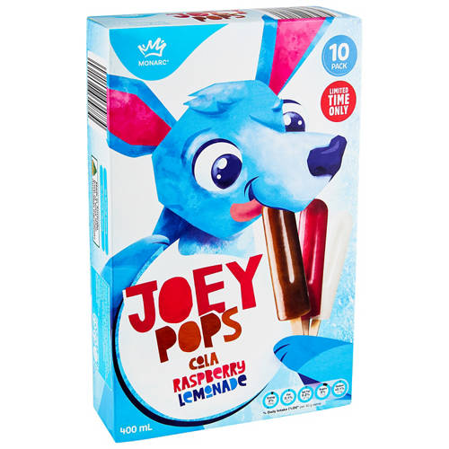 Joey Pops are the perfect summer icy treat! Each pack contains a mix of Cola, Raspberry and Lemonade flavours.