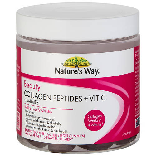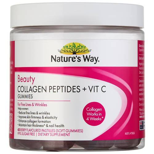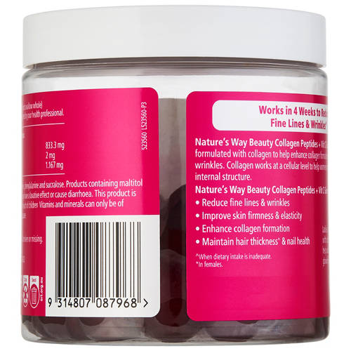 Nature's Way Beauty Collagen Mature Skin Hydrolysed Collagen + Bio-Retinol helps enhance collagen formation and improves skin elasticity and firmness in females. Supported by scientific evidence.