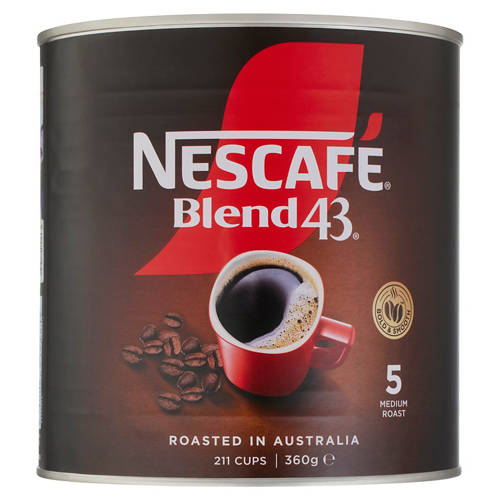 Nescafe Blend 43 is made from responsibly sourced Arabica and Robusta beans. Enjoy a medium roast, full-bodied flavoured cup with an irresitible aroma every time.
