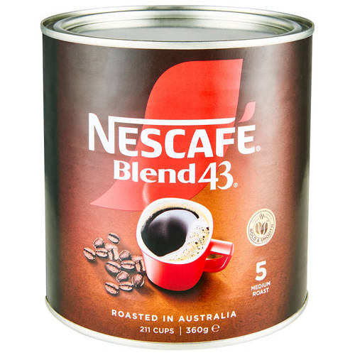Nescafe Blend 43 is made from responsibly sourced Arabica and Robusta beans. Enjoy a medium roast, full-bodied flavoured cup with an irresitible aroma every time.