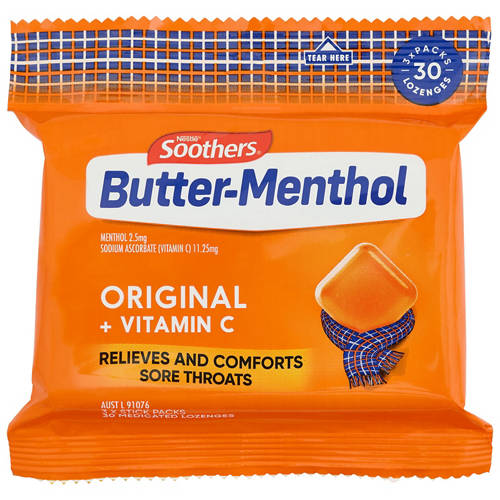 Soothing Butter Menthol lozenges in an easy grab‑and‑go multipack.