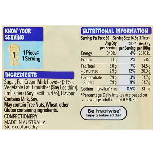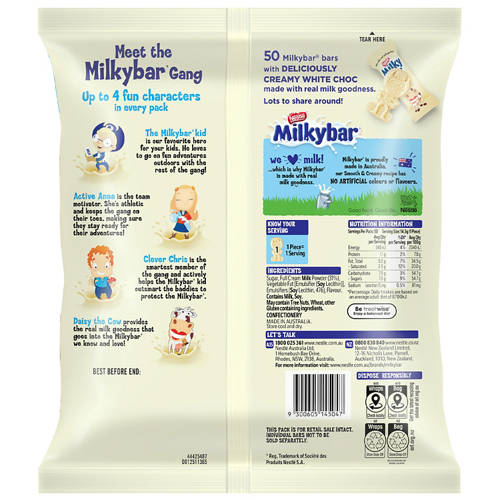 Milkybar is made with real milk goodness and proudly crafted in Australia. Its smooth and creamy recipe contains no artificial colours or flavours.