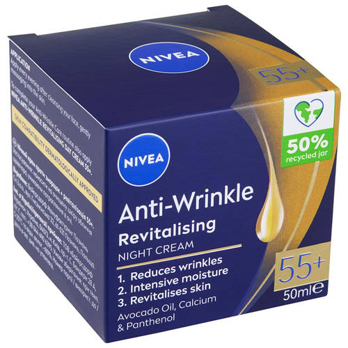 NIVEA Anti Wrinkle Firming 55+ Night Cream (50ml) visibly reduces wrinkles and boosts skin vitality. Formulated to strengthen mature skin’s resistance to dryness, for a firmer, more radiant look.