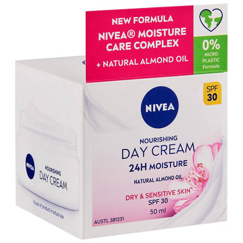 NIVEA Daily Essentials Rich Moisturising Day Cream with SPF30 is enriched with natural almond oil and shea butter to deeply hydrate for up to 24 hours. It helps balance your skin’s moisture levels while protecting against oxidative stress and free radicals.