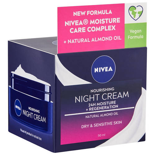 NIVEA Daily Essentials Night Cream for dry and sensitive skin delivers deep nourishment and long lasting hydration. Enriched with natural almond oil and Provitamin B5, it helps smooth the skin and protect against oxidative stress and free radicals.
