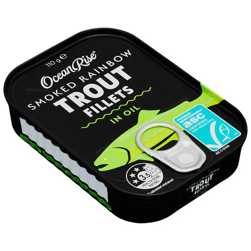 Smoked Rainbow Trout slices in olive oil, perfect in a salad or sandwich. No artificial colours, flavours or preservatives. Good source of omega 3 fatty acids and protein.