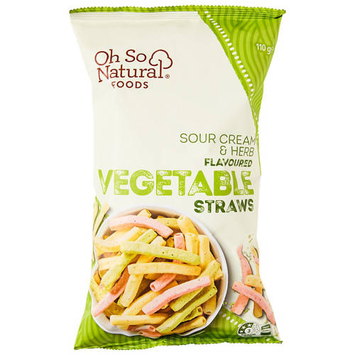 Enjoy these delicious sour cream and herb flavoured vegetable straws. Perfect for snacking. Made with no artificial colours, flavours or preservatives. No added MSG.