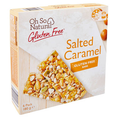 These gluten free salted caramel bars make a light and healthy snack. Made with no artificial colours or flavours.